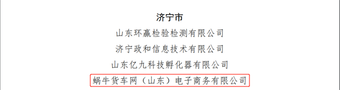 12月28日,從山東省工業(yè)和信息化廳發(fā)布的《關(guān)于公布2022年度山東省中小企業(yè)公共服務(wù)示范平臺(tái)名單的通知》魯工信服〔2022〕274號(hào)文件中傳來喜訊!經(jīng)主管部門推薦、形式審查、專家評(píng)審等多環(huán)節(jié)審查,脫穎而出,成功獲批!認(rèn)定蝸牛貨車網(wǎng)(山東)電子商務(wù)有限公司(下稱:蝸牛貨車)為2022年度山東省中小企業(yè)公共服務(wù)示范平臺(tái)。