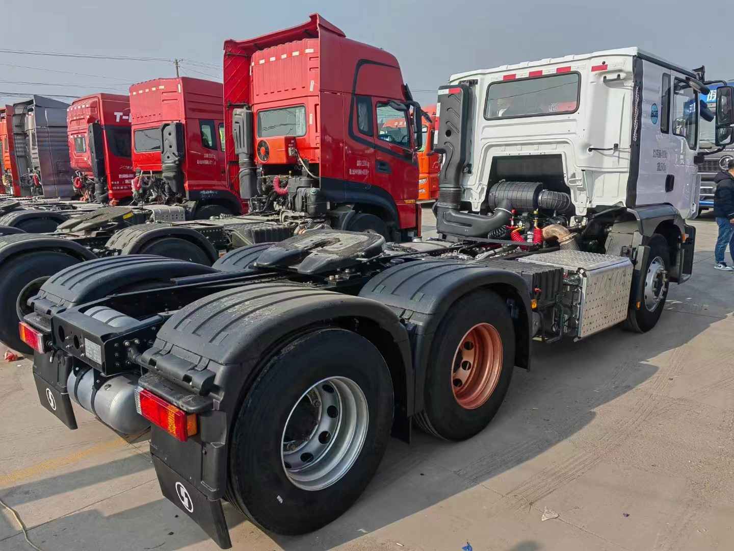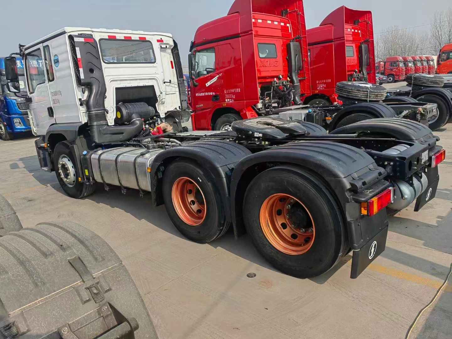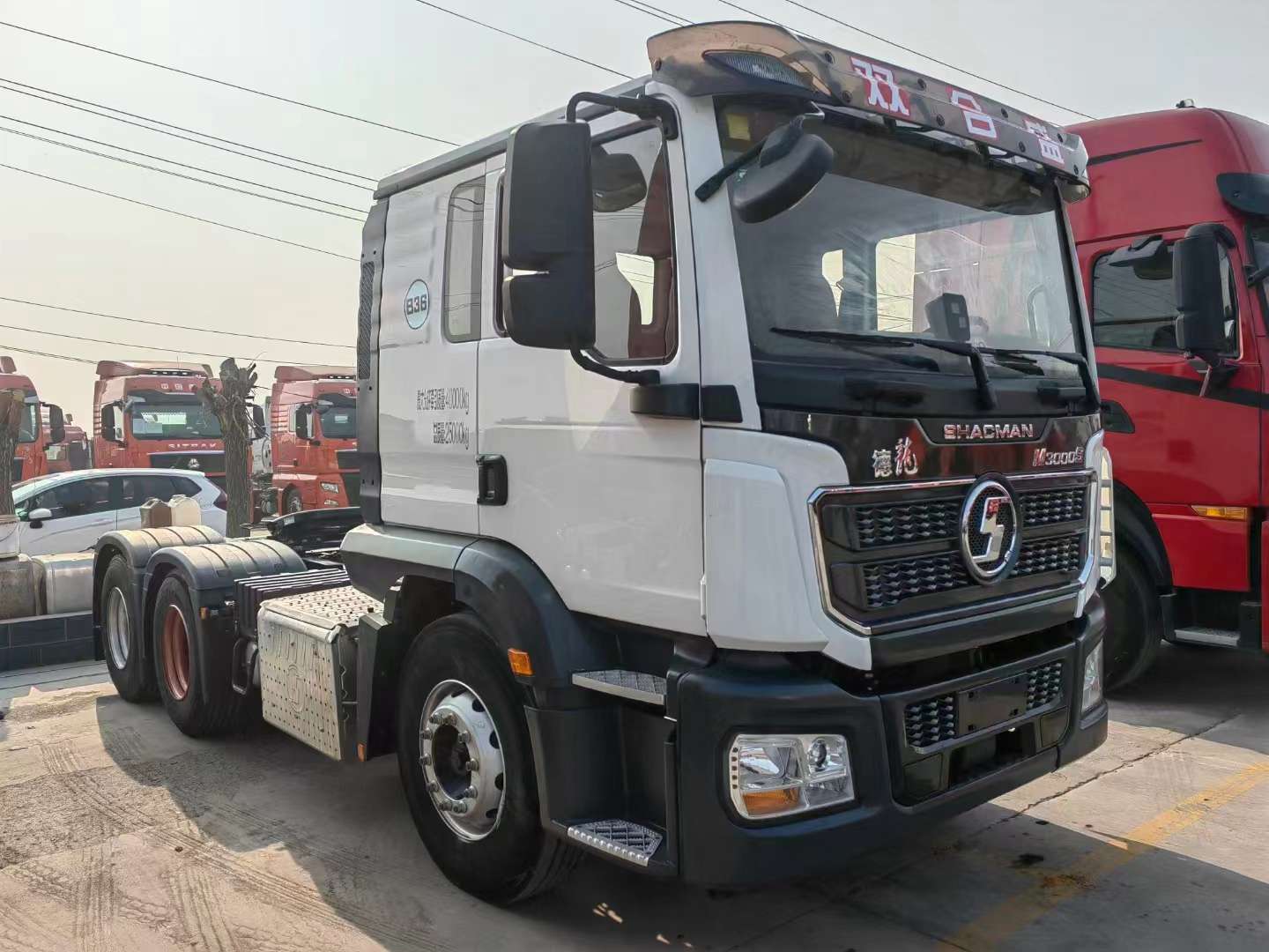新到梁山華通二手車市場(chǎng)一臺(tái)白色的德龍矮頂牽引車,陜汽德龍M3000S牽引車,22年7月上戶,濰柴12升460馬力發(fā)動(dòng)機(jī),法士特(自動(dòng)懷擋)變速箱,法士特液力緩速器,前二后三板簧,陜西漢德后橋,速比是3.7,全國可提檔可分期。