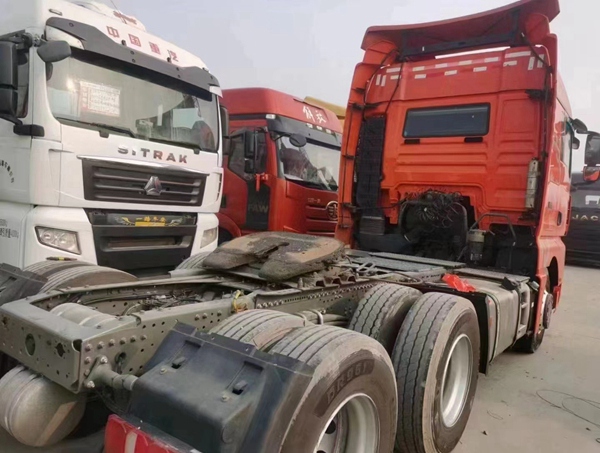 新到梁山華通二手車市場一臺21年3月金標(biāo)汕德卡牽引車,二手汕德卡牽引車,540馬力自動擋,采埃孚變速箱帶液緩,駐車空調(diào)、采暖、全車新輪胎等,車況精品。