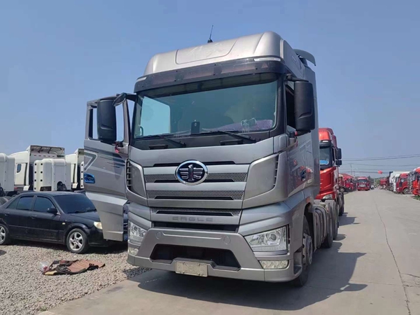 新到梁山華通二手車(chē)市場(chǎng)一臺(tái)精品二手解放牽引車(chē),21年跑車(chē),二手解放大J7牽引車(chē),國(guó)六排放,采埃孚自動(dòng)擋帶液緩,全車(chē)鋁合金鋼圈,車(chē)況精品,包提全國(guó)。買(mǎi)二手貨車(chē)就到梁山華通二手車(chē)市場(chǎng)。