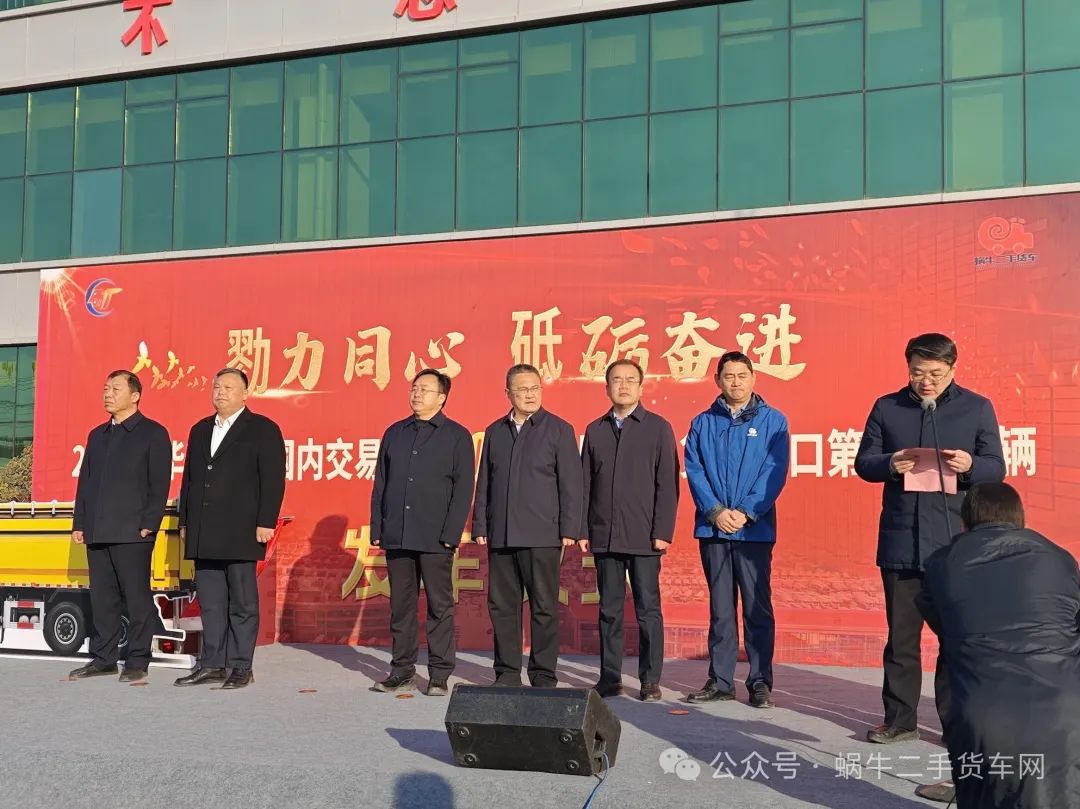 2024年12月29日上午,華通二手車市場迎來了具有里程碑意義的國內(nèi)交易第40000輛暨蝸牛貨車網(wǎng)出口第6500輛發(fā)車儀式。梁山縣委副書記、縣長劉剛,縣人大常委會副主任曹景全,開發(fā)區(qū)黨工委書記、管委會主任李來茵,縣商務(wù)局黨組書記、局長薛軍起,縣市場監(jiān)督管理局黨組書記、局長李志剛,縣委統(tǒng)戰(zhàn)部副部長張洪濤,縣新階聯(lián)會長王成允,廣安集團(tuán)總裁何兆廣,國內(nèi)車商代表,國外客戶代表,多家新聞媒體等各方代表,共計(jì)100余人參與和見證了這一歷史性的時刻??h工信局黨組成員、專用汽車產(chǎn)業(yè)服務(wù)中心主任賈春暉主持活動。